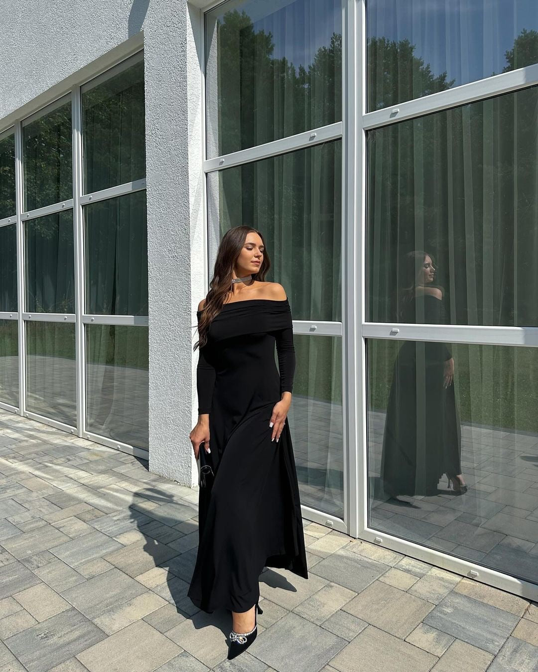 Black Long Sleeve Basic Dress
