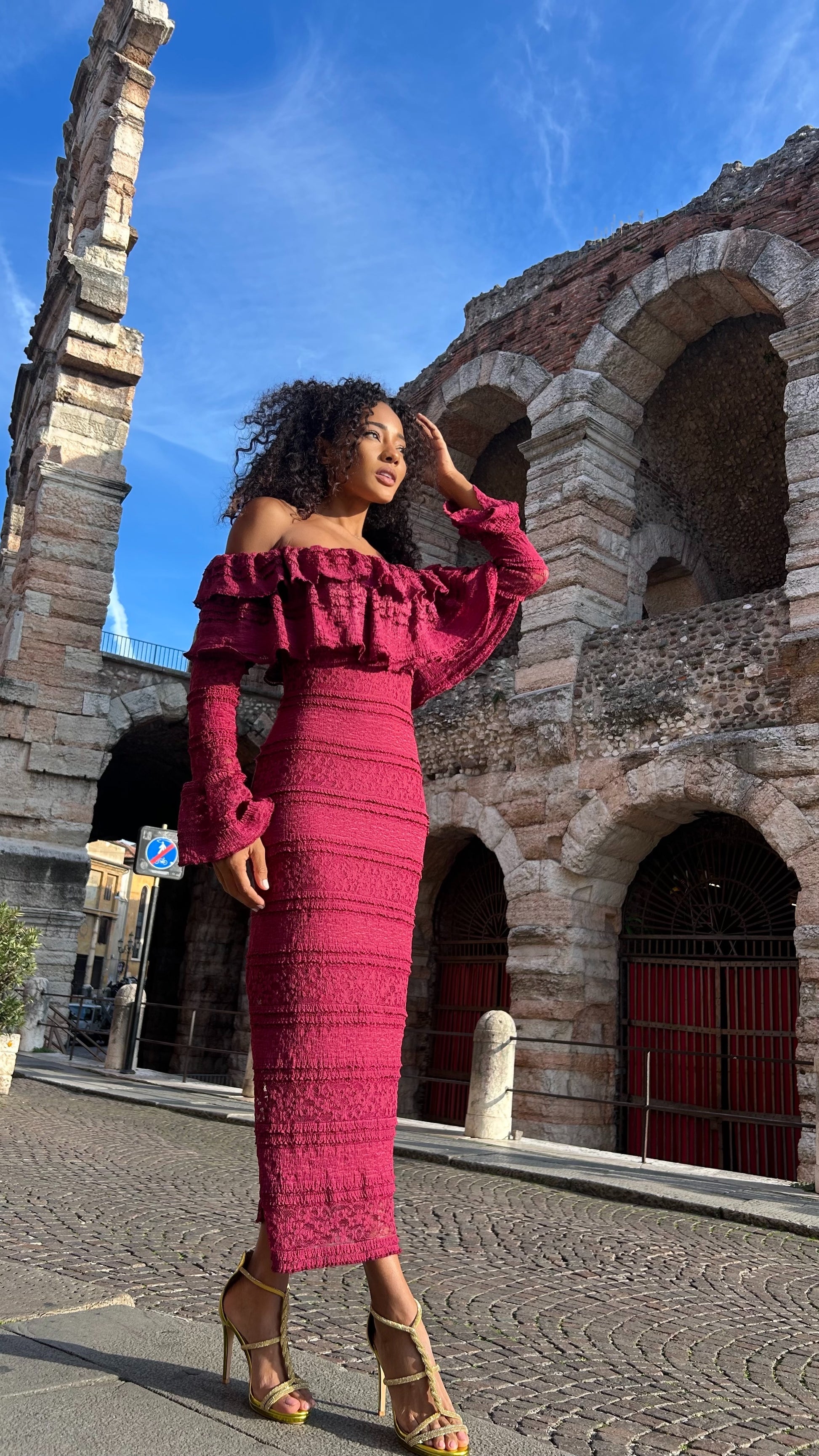 burghandy Vova Strapless Dress
