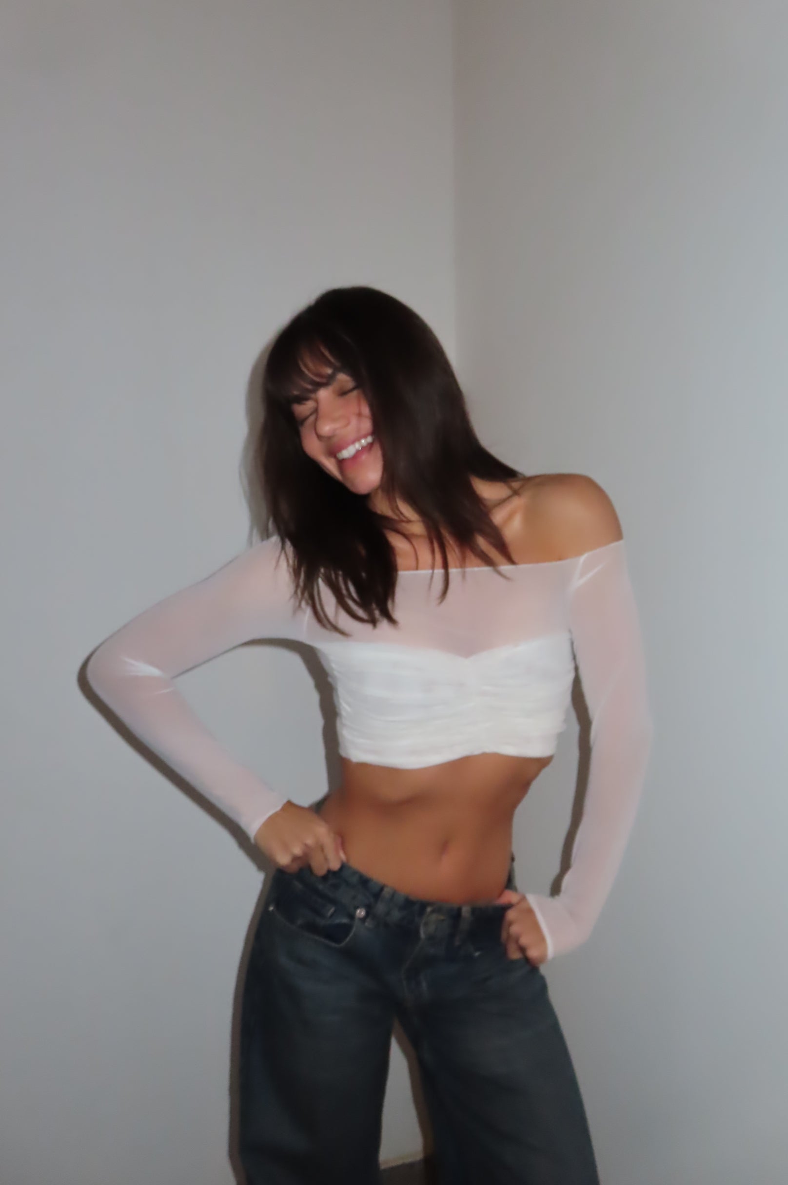 White Tulle Crop Top